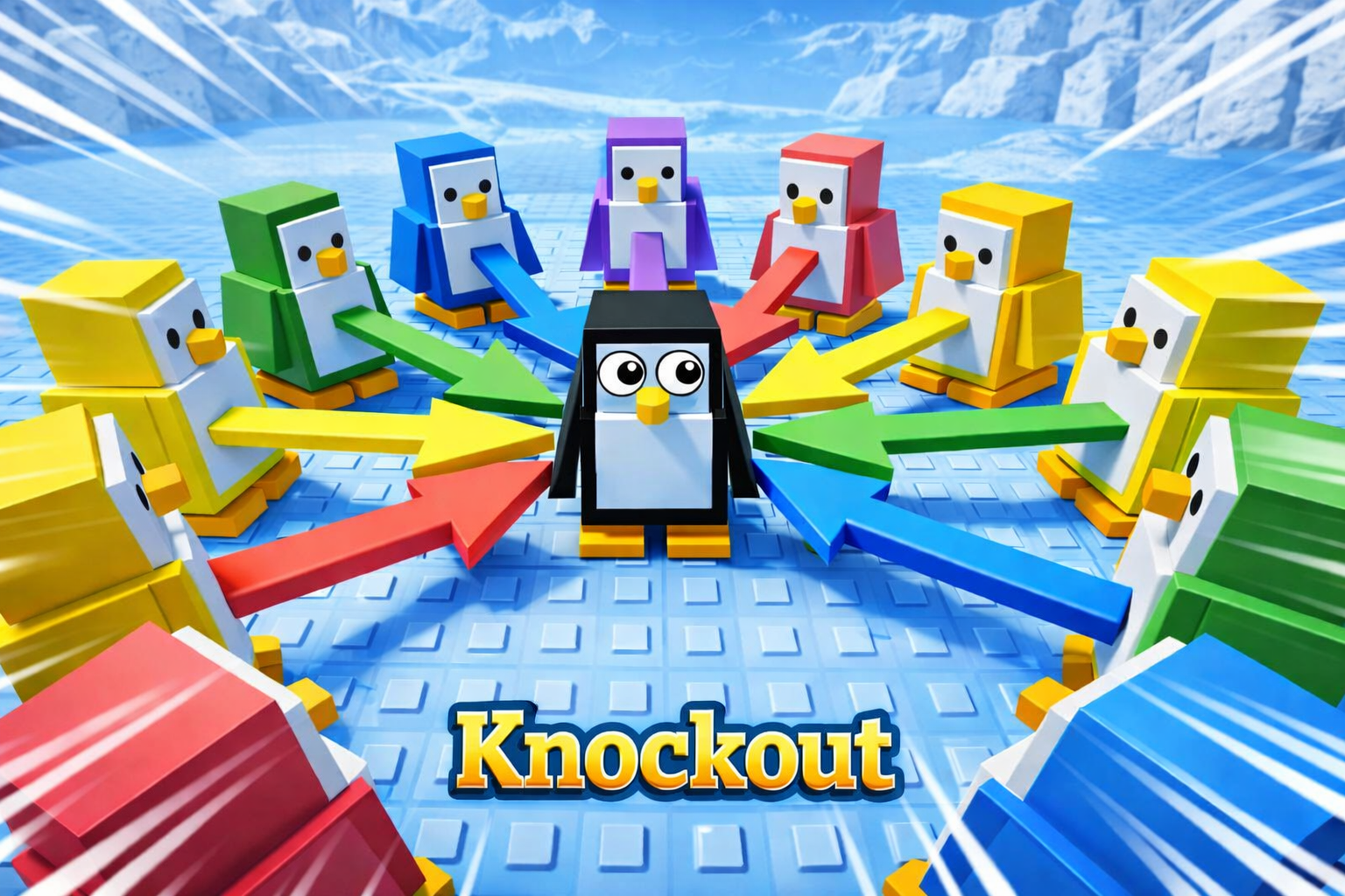 Knockout is a fun and fast-paced multiplayer battle game where players control adorable penguins fighting on a slippery ice platform. Your mission is simple: knock all opponents off the arena and become the last penguin standing.