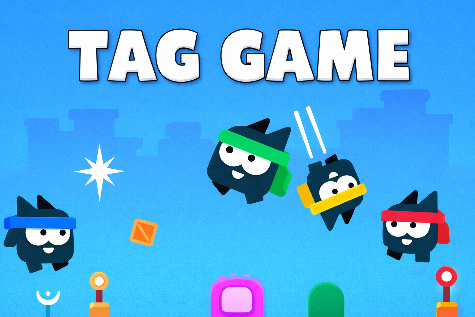Tag Game is a fun multiplayer online game developed by JetGames where 2 to 4 players chase and tag each other across three unique maps. In this competitive tag arena game, one player begins as the tagger and must catch someone before time runs out—because if you’re still the tagger when the timer ends, you lose the match. Each successful tag instantly switches roles, keeping every round of Tag Game fast-paced, competitive, and unpredictable.